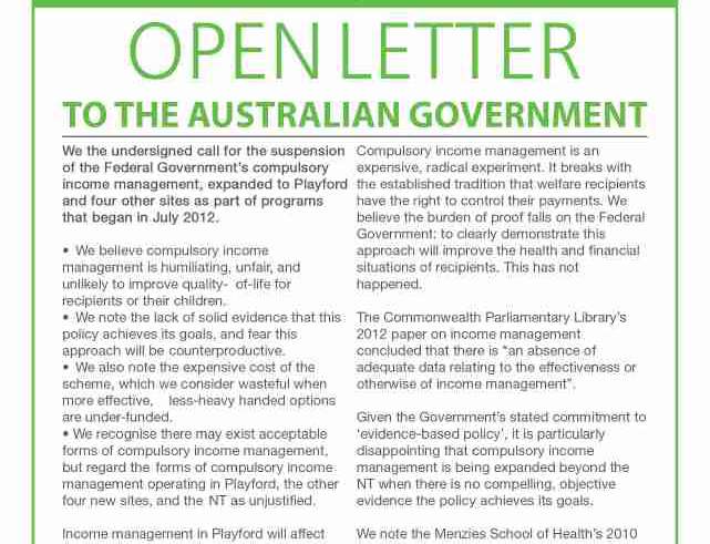 In the Adelaide suburb of Elizabeth, the Stop Income Management in Playford (SIMPla) group have been campaigning against the implementation of one of the measures introduced by the Northern territory Intervention, Income Management into metropolitan sites around Australia.
