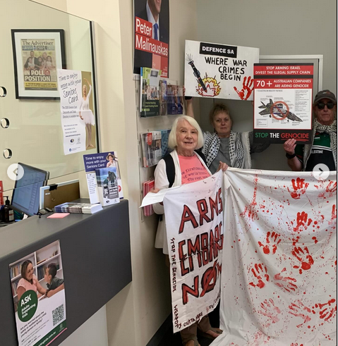 Campaigning in the South Australian 2026 state election is well underway. Anti-war protestors have their own thoughts on what should be on the campaign agenda. They decided to focus on a number of electoral seats that host industrial military complexes in Adelaide/Kaurna Yerta.